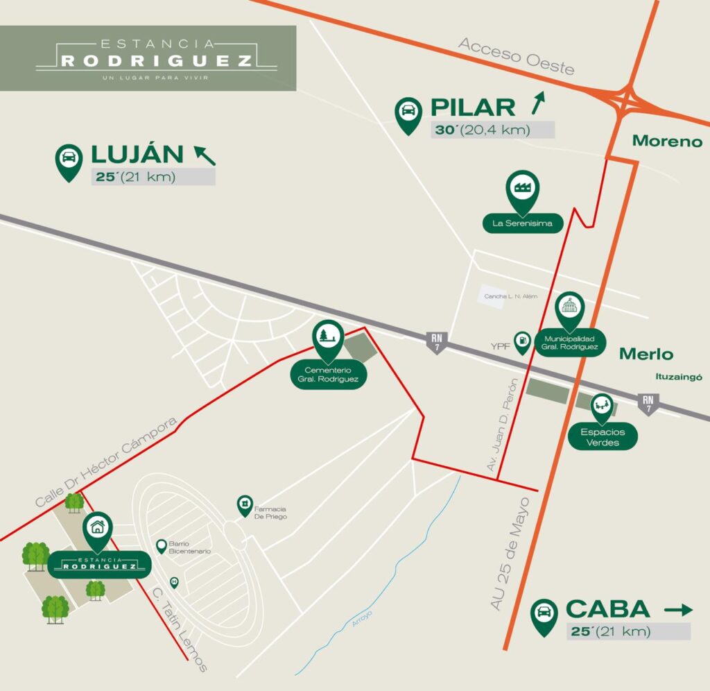 Un lugar increible para vivir Lotes 250 a 300m2 35 USD el m2 Posesión 1° Semestre 2024 CUOTAS SIN INTERES MÁS INFORMACÍON Contacto Estamos para asesorarte, dejanos tu mensaje y te responderemos a la brevedad. Coordina tu vista +549112222-2222 ENVIAR Ubicación privilegiada Frente al Barrio Bicentenario a 10 minutos del centro de Gral. Rodríguez A 8 minutos de Acceso Oeste. COMO LLEGAR Posesión 1° Semestre 2024 Servicios Espacios Verdes Seguridad 24hs Red de agua y cloacas Tendido eléctrico TU PUERTA DE ENTRADA al futuro CONTACTANOS CONTACTANOS Desarrolla Somos una empresa constructora con experiencia en desarrollos inmobiliarios. Contactanos para conocer nuestro recorrido! CONTACTANOS